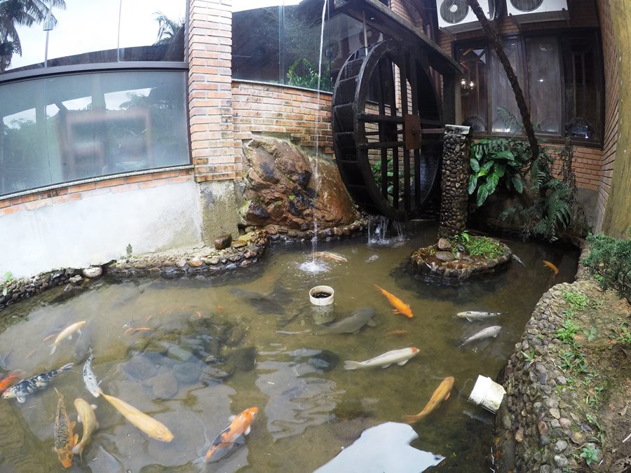 Aqui vale um destaque para outros profissionais do hotel, que ao ver uma oportunidade, fazem questão de dar uma atenção especial. A gente estava com o Enzo, nosso sobrinho e afilhado de 1 ano e 10 meses. A todo momento a gente passeava com ele, que ao ver tanta coisa diferente achava o máximo. Saindo do restaurante um dia, paramos no lago das carpas, que fica bem próximo à porta. Os peixes são maravilhosos e tem uma roda d´água bem bonita.