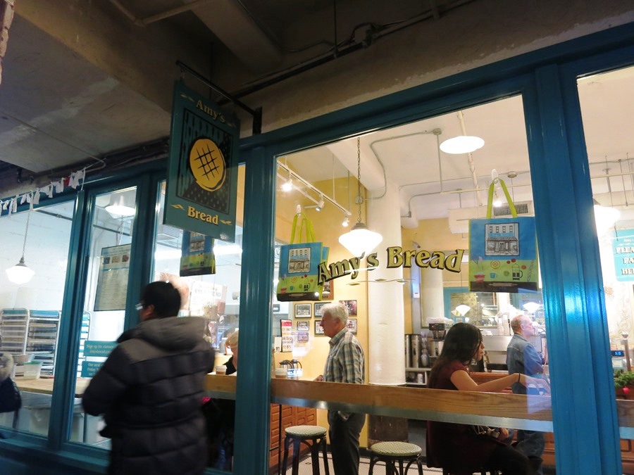 A fome era grande, então entramos pra conhecer e ficamos de olho em algum alvo para nosso café. Não teve muita indecisão, pois quando passamos na frente do Amy´s Bread falamos: é aqui! E não foi por que nossa cachorrinha se chama Amy (tá bom, um pouco foi). Mas é uma padaria muito legal, que além do Chelsea Market está em outros 5 endereços de Nova York. Fomos até o balcão e pedimos nossos cafés, sanduíches e cookies. Sentamos nas mesinhas que que ficam do lado de fora, em meio aos passantes que naquela manhã fria ainda eram bem poucos. Nessa “padoca” eles dão cursos de culinária e vendem produtos deliciosos. Também é um lugar que já foi cenário de programas de TV famosos nos EUA, tem muitas fotos lá mostrando isso.