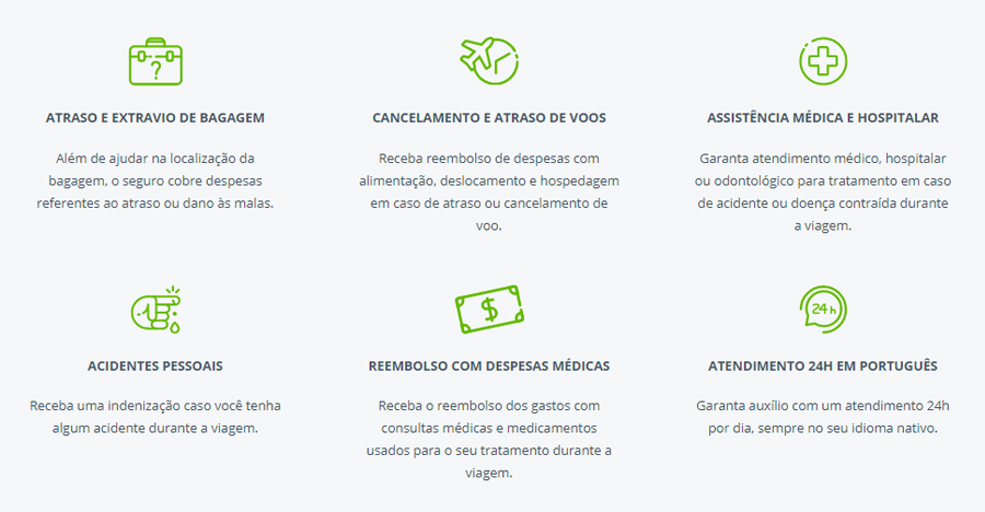 Pensando em fazer uma viagem para outro país? Então lembre-se de que além do passaporte e do visto de turista (exigido por muitos países), há outros itens importantes que não podem ser esquecidos, como o seguro viagem. Além de funcionar como um plano de saúde internacional, ele ainda oferece vários benefícios (figura abaixo) aos seus segurados. Nesse post vamos falar sobre a importância de adquirir uma apólice de seguro internacional e como contratar o melhor seguro viagem. Além disso, também daremos dicas de onde cotar e contratar seguros de viagem pelo melhor custo-benefício.