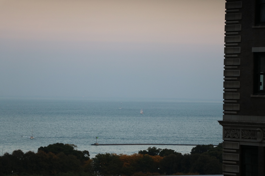 As duas semanas nesse lugar foram muito boas. O entorno do Fornelli Tower é sensacional. Não teríamos problemas em ficar mais três meses por ali. Extremamente bem servido de serviços e atrações turísticas, certamente estávamos no melhor ponto da belíssima Chicago. O ruim foi que o tempo passou muito rápido! Olha só a vista que tínhamos da janela da sala (ok, a foto tem zoom, mas é uma vista vai?).