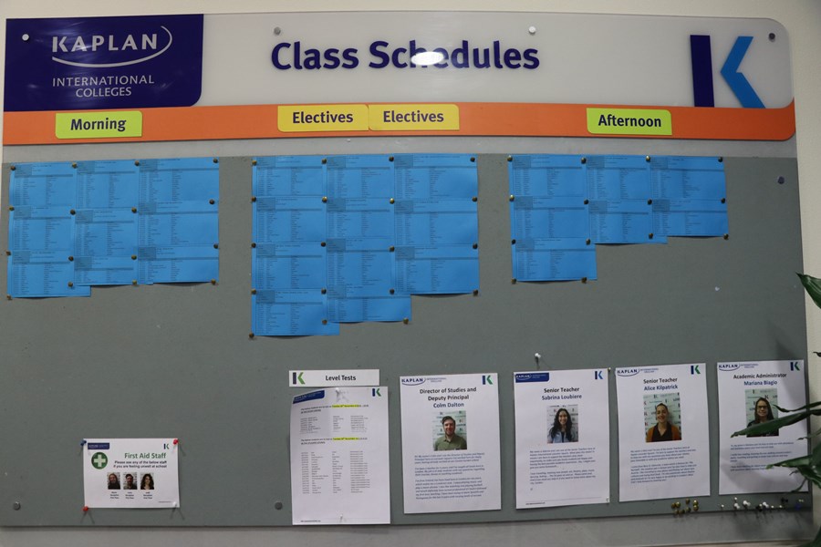 Uma regra básica nesse país é pontualidade e na Kaplan não é diferente. Foi explicado que as aulas começam no horário determinado e que tolerância de atraso é de apenas 5 minutos. No nosso caso começavam todos os dias às 8h45. Chegando depois do limite de tolerância, só é permitida a entrada após o intervalo. Vimos isso acontecer alguns dias. Aí esses alunos utilizam os espaços como Café e o Study Centre para esperar, aguardar, ler, etc.