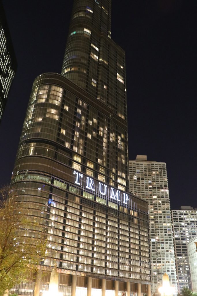 Esse edifício do Trump é grandioso, uma “babilônia” como diria minha mãe. Ele fica bem no centro, do lado do Chicago River, é todo espelhado com 98 andares. De onde quer que você olhe ele está lá. Ali tem empresas e também um hotel da rede Trump. Além disso, um restaurante no 16º andar chamado The Terrace, onde fica esse rooftop.