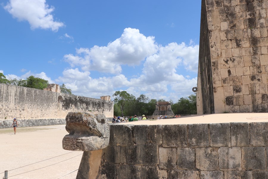 O jogo de bola era o esporte mais importante dos maias. Aí você pensa, nossa! Que legal que eles já curtiam um esporte nessa época. Mas gente, presta atenção na loucura dos caras. Essa quadra era como o Maracanã de todo o império, o estádio mais importante. E o jogador que marcava ponto era sacrificado. Havia decapitações nesse estádio. Coisa de louco!