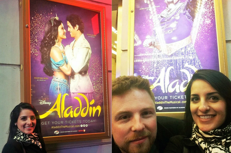 “Nossa, o Musical Aladdin é perfeito, muito emocionante. Pra quem é fã e assistiu o filme, é muito fiel. Eu (Iza) cantei junto todas as músicas e o Matheus estava impressionado.