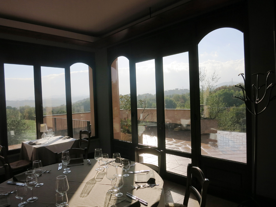 Pela manhã descemos pra tomar o café e fazer umas fotos. A paisagem do local é linda, verde e montanhosa. Não foi o caso do nosso, mas de alguns dos apartamentos é possível avistar o principal ponto turístico de lá, que é o Forte di Gavi.