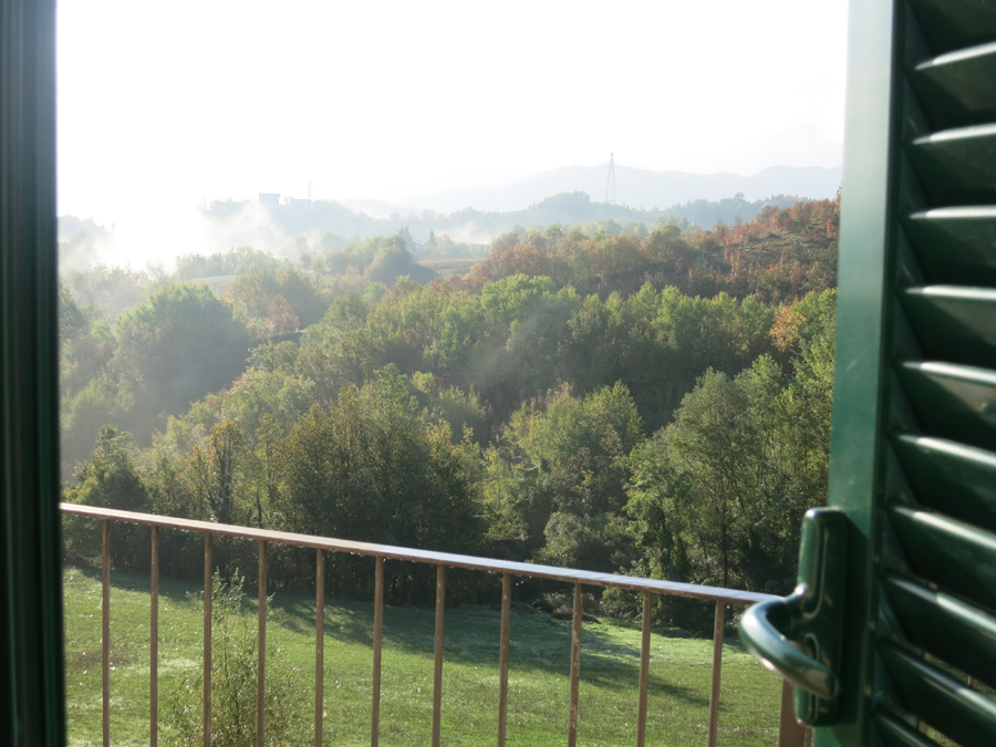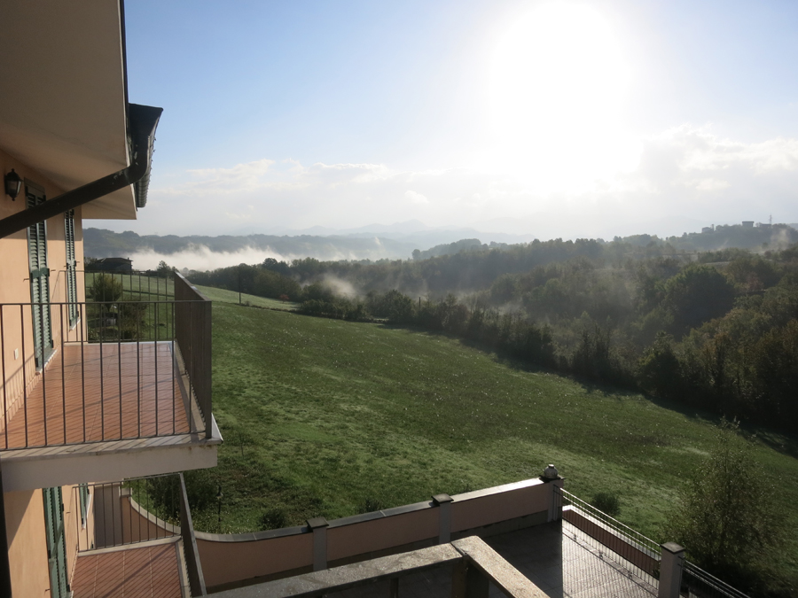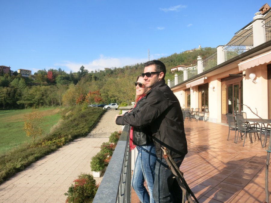 Pela manhã descemos pra tomar o café e fazer umas fotos. A paisagem do local é linda, verde e montanhosa. Não foi o caso do nosso, mas de alguns dos apartamentos é possível avistar o principal ponto turístico de lá, que é o Forte di Gavi.
