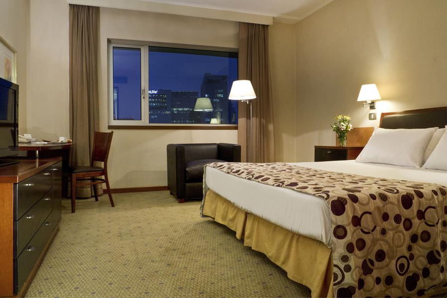 Vantagens: O Mercure Centro é um hotel em Santiago muito confortável e com padrão internacional. Tem elevador, serviço de lavanderia, restaurante e bar para seus hóspedes. Oferece também transfer pago para o aeroporto, além de ter recepção 24h, piscina, uma boa academia e salas para reuniões e eventos. Tem boa localização, fica ao lado de uma estação de metrô e próximo de atrações turísticas. O hotel também oferece traslados para o shopping Parque Arauco algumas vezes ao dia.