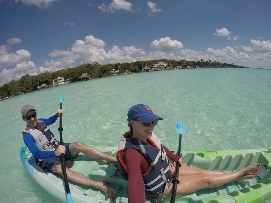 A lagoa de Bacalar é linda e praticar esportes ali é um prato cheio pra quem curte isso. Os hotéis e restaurantes que ficam à margem da lagoa alugam os equipamentos que você precisa pra isso. Stand up paddle (SUP), caiaque e snorkel são algumas das atividades possíveis.