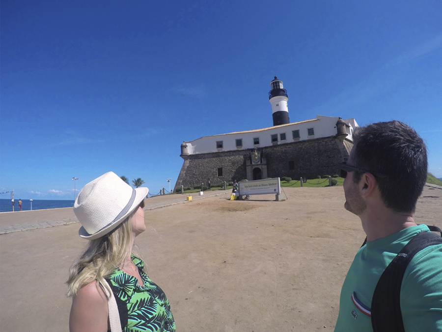 Começamos deixando nossa malas na própria agência e indo de Uber até o Farol da Barra. No caminho já combinamos do Uber nos esperar para fazermos umas fotos e logo já voltar. Assim não perderíamos tempo chamando outro motorista.