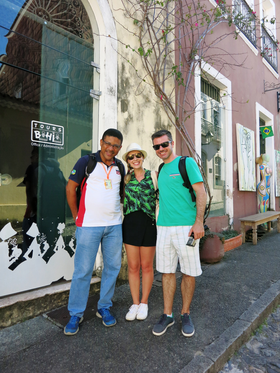 Do Farol, voltamos para a Tours Bahia para começar o passeio pelo Centro Histórico. Essa agência oferece vários tipos de city tours, com duração mínima de 3h. Mas como nosso tempo era curto, adaptamos o roteiro fazendo um Walk Tour de 1h30, na companhia do guia Bira.
