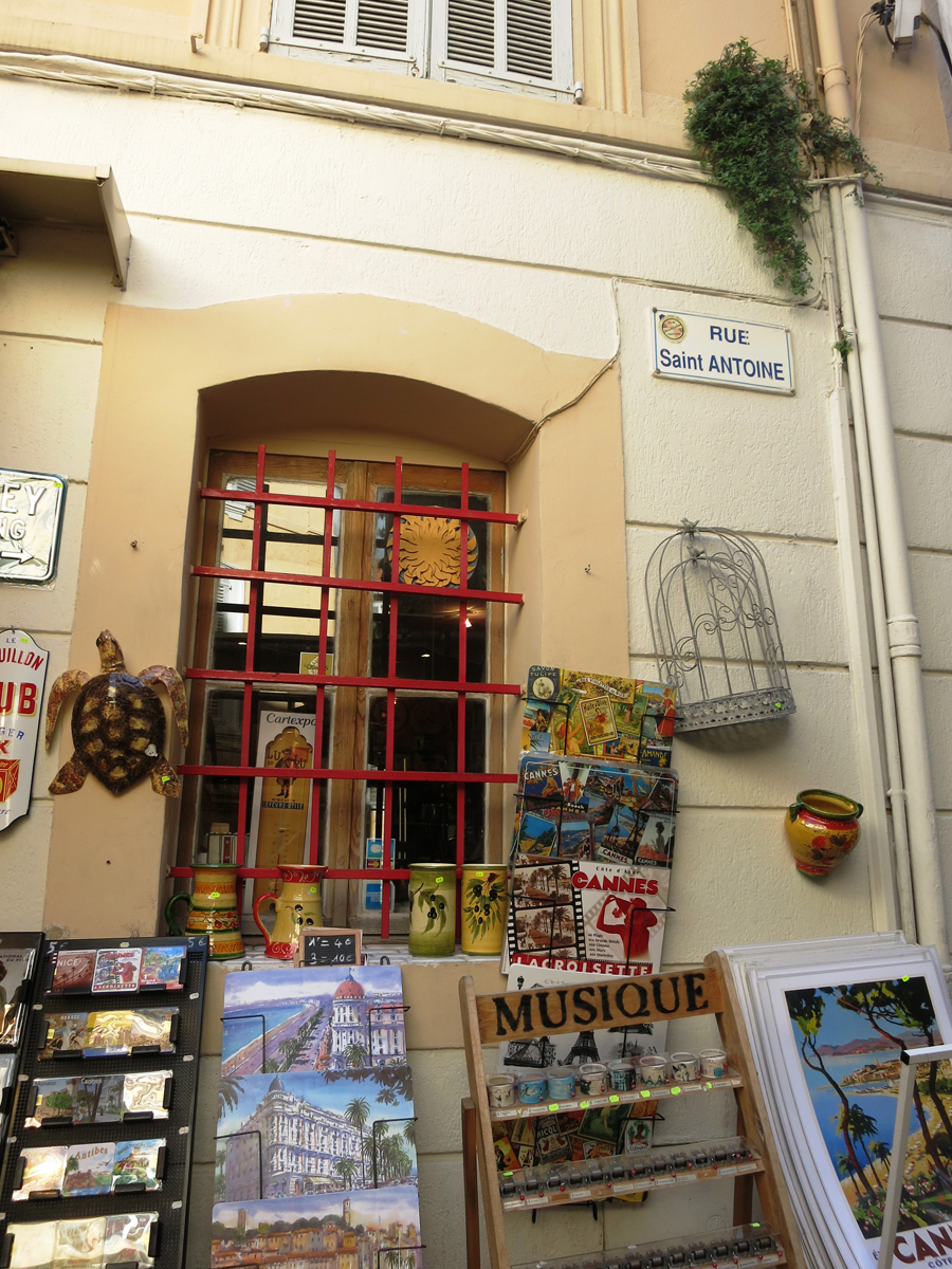 Voltamos por essa rua em direção à Le Suquet, uma ladeira histórica famosa pelos ótimos restaurantes. Passamos por ela algumas vezes, e é impressionante o quanto os garçons abordam para apresentar o cardápio. A concorrência é grande, então eles precisam chamar mesmo! Ali também é um bom lugar para encontrar souvenirs de qualidade. Uma lojinha chamou bastante nossa atenção, o nome era Aux Bonheurs du Suquet, ali compramos algumas coisas de lembrança.