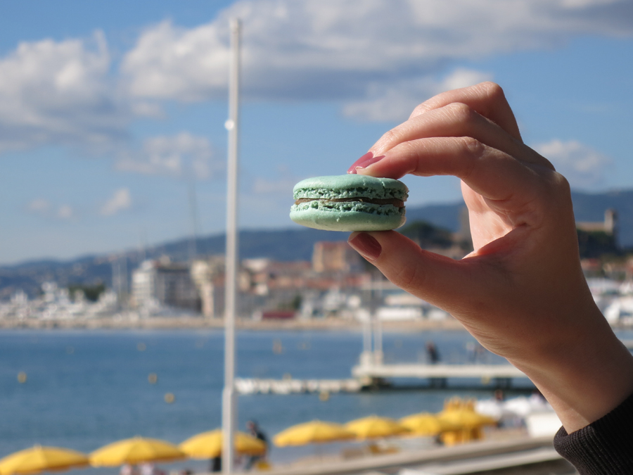 Ao andarmos pela orla e também pelas ruas paralelas vimos todas as grandes marcas de luxo. E pensar que Cannes tem menos de 75 mil habitantes. Pequena para sustentar essa estrutura toda né? Procuramos a Ladurée, uma lojinha famosa que vende macarons franceses deliciosos. Fica na Rue d´Antibes, onde o comércio ferve.