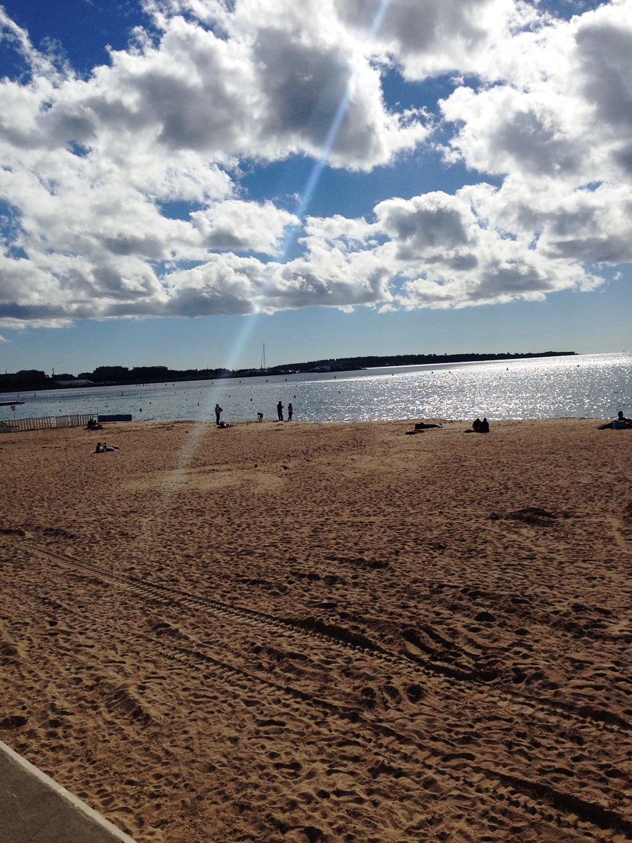 Ficamos sentados nos banquinhos da calçada em frente, apreciando a vista do mar e nos esquentando no sol. Fazia um friozinho que deixava o clima perfeito para tomar uma vitamina D, naquele dia ensolarado. Ah, e no verão essa orla deve bombar. Vimos muitos bares de praia lindos e com uma baita estrutura. Bem decorados, com pufes, mesas e espreguiçadeiras. Ideal para curtir o verão europeu.