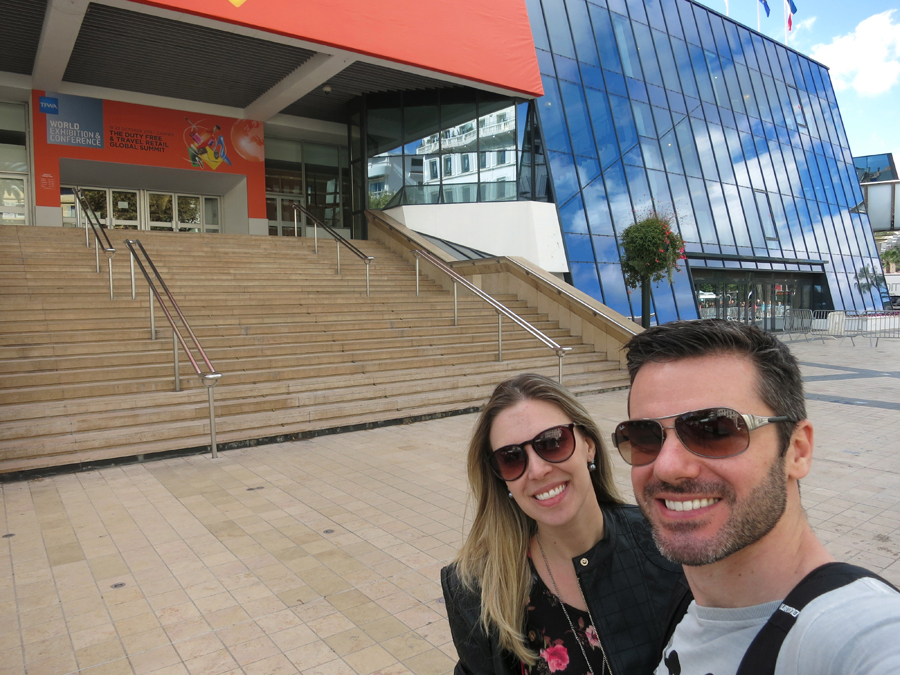 Passamos primeiro em frente à prefeitura de Cannes (Mairie de Cannes), um prédio muito bonito que tem uma bela praça em frente. Seguimos pela Boulevard de La Croisette – a famosa avenida na orla de Cannes e já avistamos o Palais des Festivals, que é o local onde se realiza o Festival de Cinema de Cannes e também o de propaganda, Cannes Lions. Não tem nada demais nele, inclusive estavam preparando o local para um evento e aí era uma bagunça que mal valia uma foto.