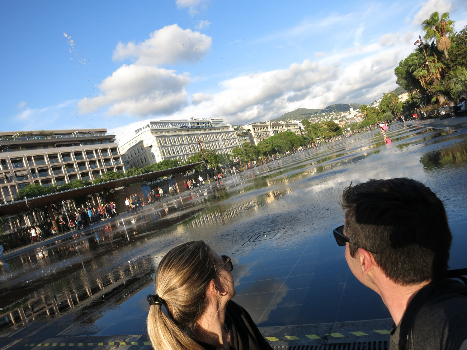 Para finalizar o nosso passeio por Nice, descemos a colina pela Promenade des Anglais e fomos caminhando pelo centro histórico até a Place Massena. Essa praça é a maior e mais famosa de Nice, ela fica bem próxima da praia e ao redor encontram-se algumas das lojas mais chiques da cidade, de marcas internacionais, grifes locais e italianas.